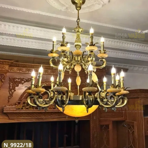 ĐÈN CHÙM ĐỒNG ĐÁ ĐẾ NẾN 18 TAY 𝐍_𝟗𝟗𝟐𝟐/𝟏𝟖