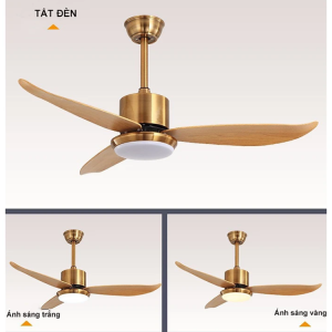 QUẠT TRẦN ĐÈN 3 CÁNH GỖ THÂN VÀNG CAO CẤP FAN-02