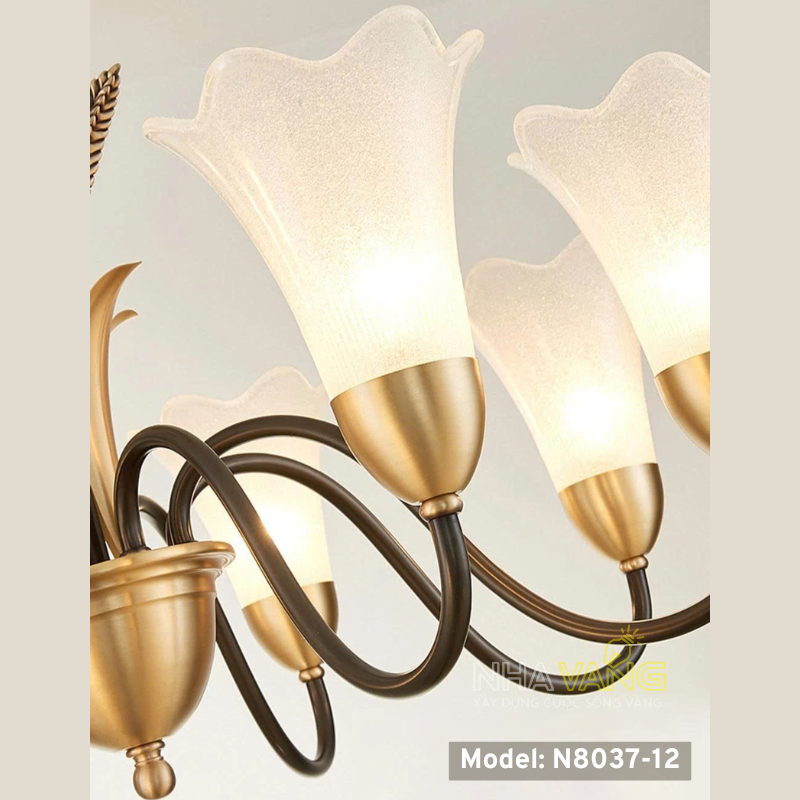 – Chất liệu: Khung đồng + hợp kim sơn tĩnh điện, chao thuỷ tinh