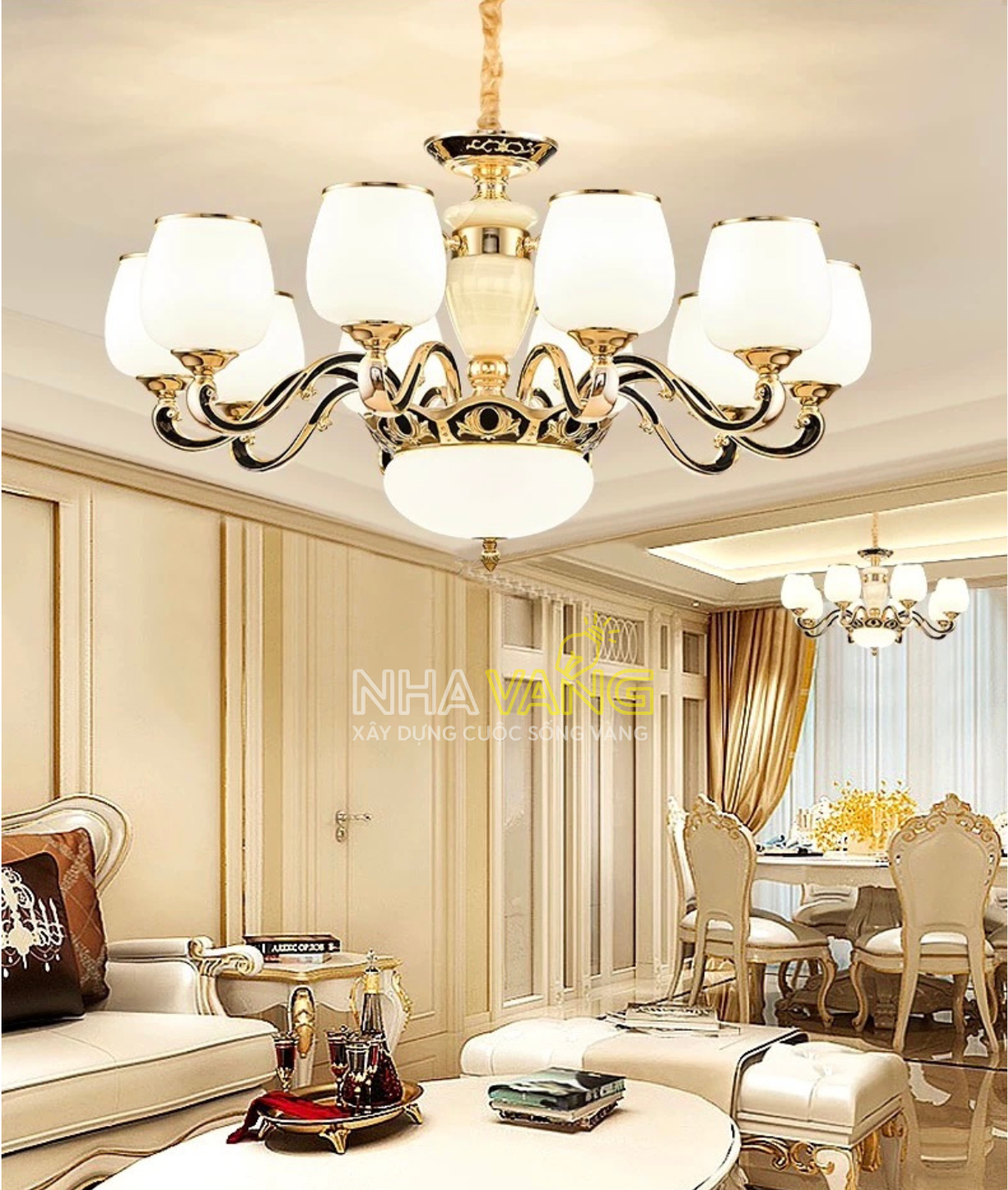 Thiết kế: ĐÈN CHÙM CỔ ĐIỂN DÁNG CỐC 8 TAY
