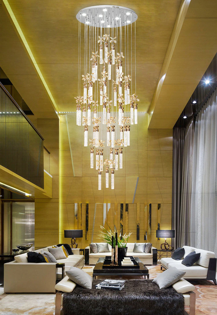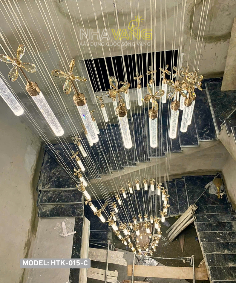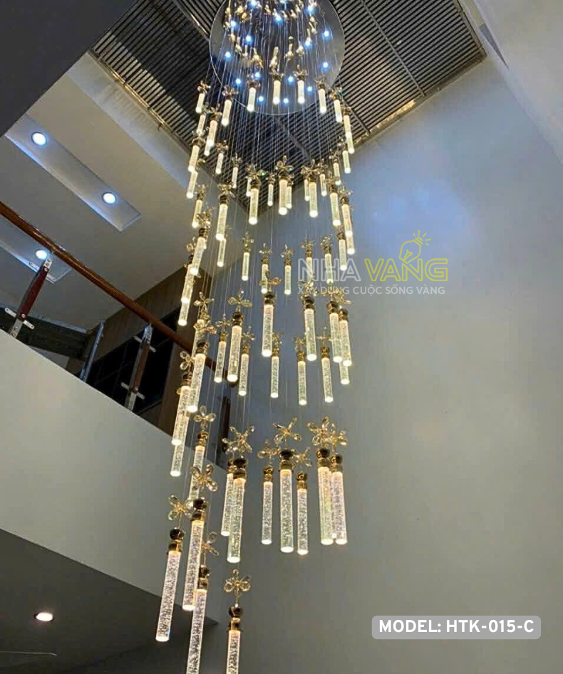 Đèn chùm trụ pha lê thả thông tầng HTK-015-C là mẫu đèn thường được sử dụng chủ yếu ở các không gian rộng và cao như giếng trời hoặc cầu thang, phòng khách thông tầng có trần cao của những ngôi nhà biệt thự hoặc nhà ống và nhà liền kề, khu vực đại sảnh trong các nhà hàng, khách sạn cao cấp và trung tâm thương mại.