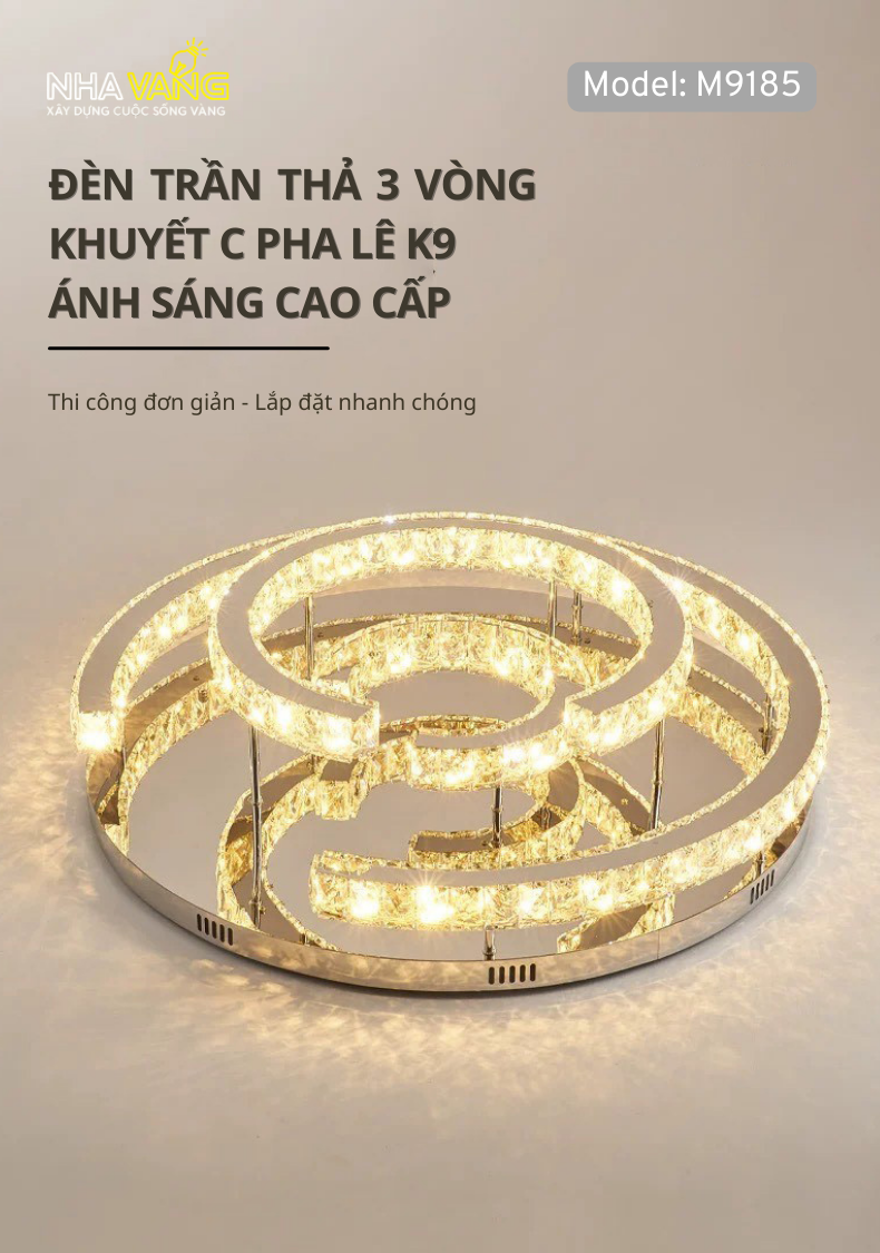 ĐÈN MÂM TRÒN ỐP TRẦN 3 VÒNG PHA LÊ KHUYẾT M-9185