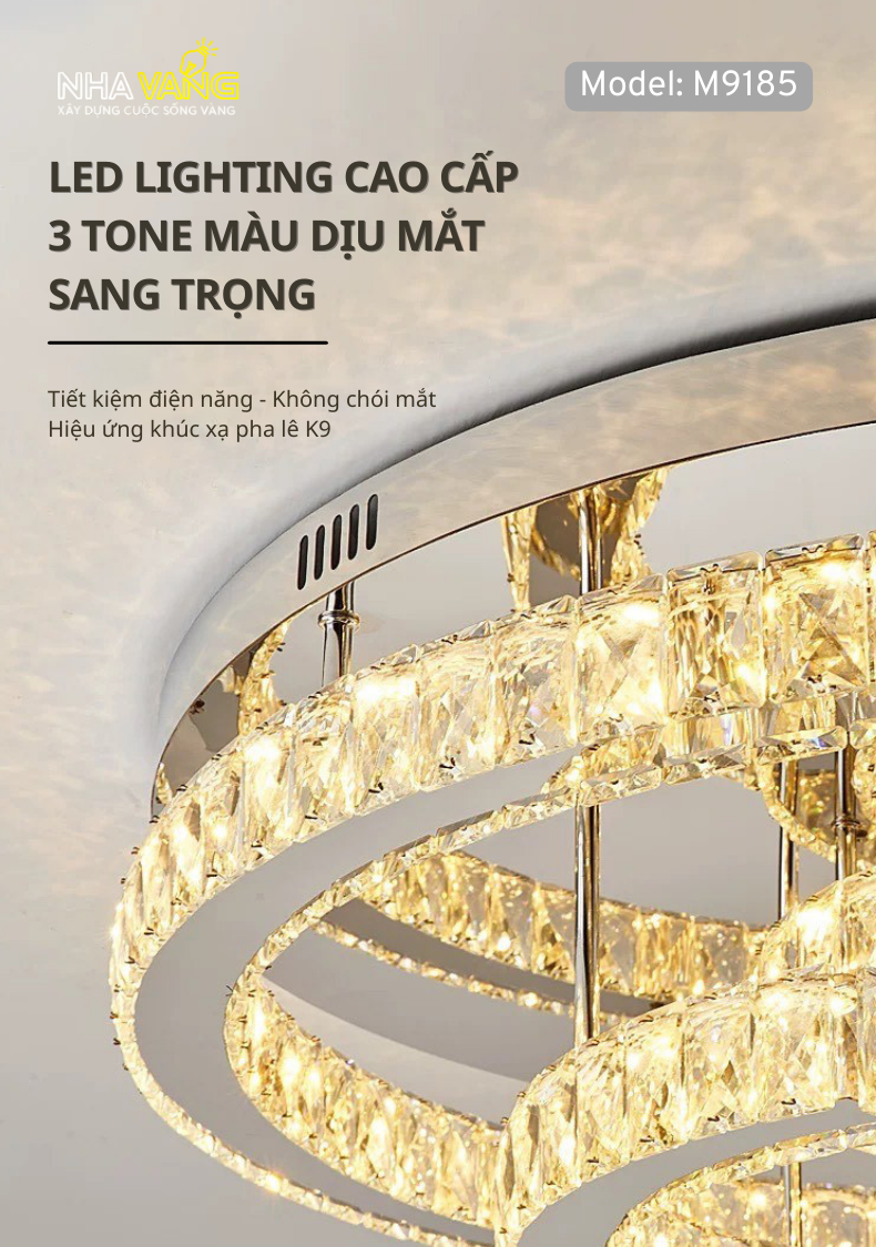 Một mã đèn ốp trần 3 vòng pha lê khuyết khúc xạ ánh sáng cực kì tinh xảo 𝐌-𝟗𝟏𝟖𝟓