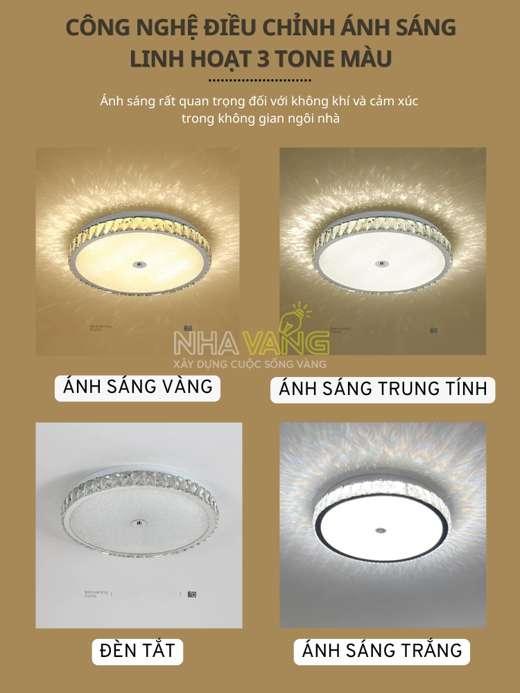 Thiết kế tối ưu hóa kích thước nhưng vẫn kết hợp pha lê truyền sáng cao cấp để phù hợp với mọi không gian có chiều cao hạn chế: phòng khách nhỏ, phòng ngủ, phòng làm việc,… Tạo điểm nhấn sang trọng mà vẫn giữ không gian thoáng.