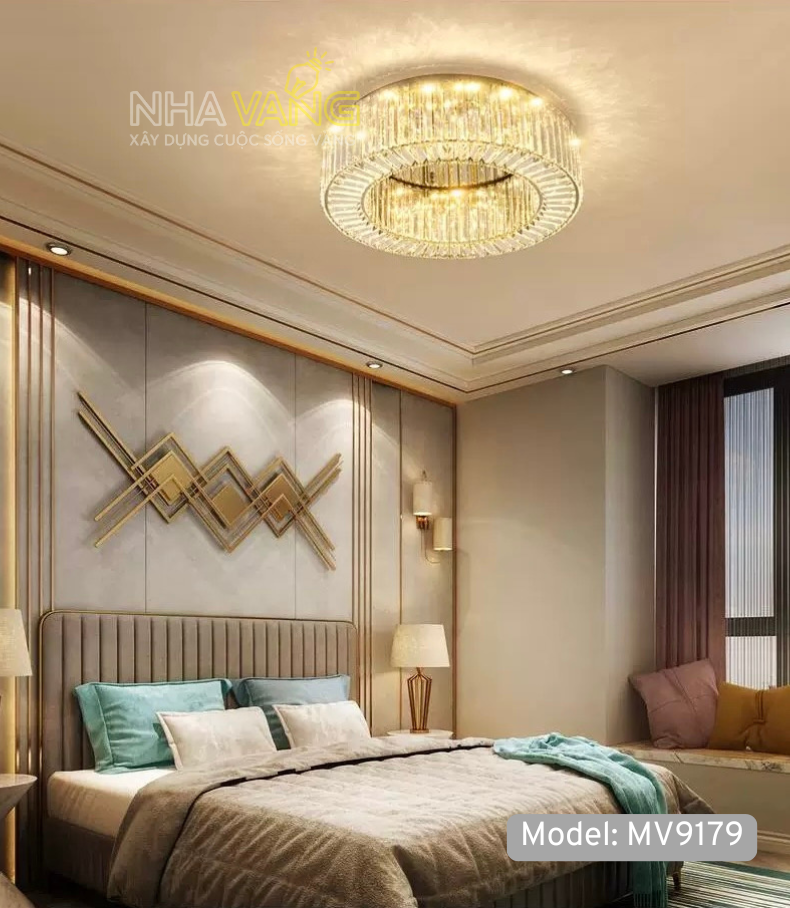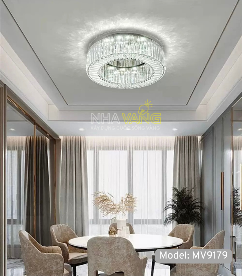 Mã đèn mâm tròn ốp trần vòng pha lê khúc xạ ánh sáng cực sang 𝐌𝐕-𝟗𝟏𝟕𝟗