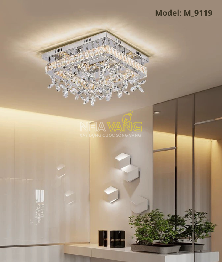 ĐÈN MÂM VUÔNG ỐP TRẦN THẢ PHA LÊ CÁNH HOA M-9119