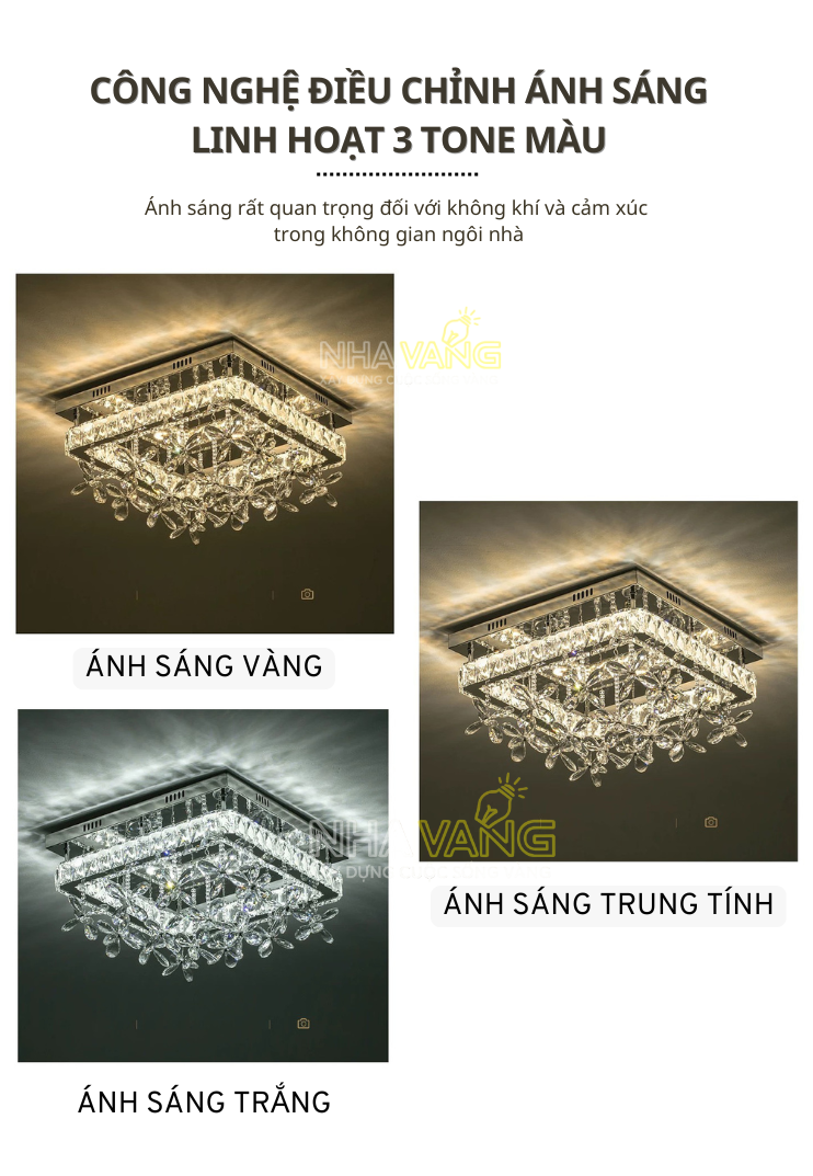 Thiết kế tối ưu hóa kích thước nhưng vẫn kết hợp pha lê truyền sáng cao cấp để phù hợp với mọi không gian có chiều cao hạn chế: phòng khách nhỏ, phòng ngủ, phòng làm việc, hành lang… Tạo điểm nhấn sang trọng mà vẫn giữ không gian thoáng.