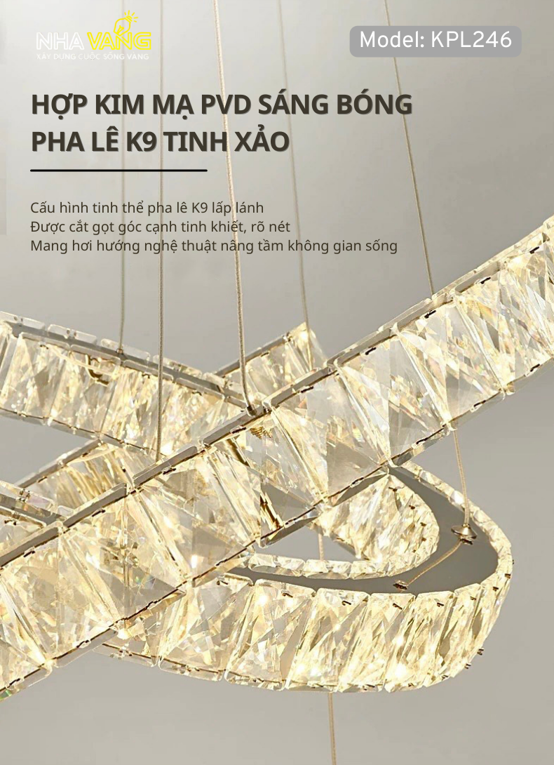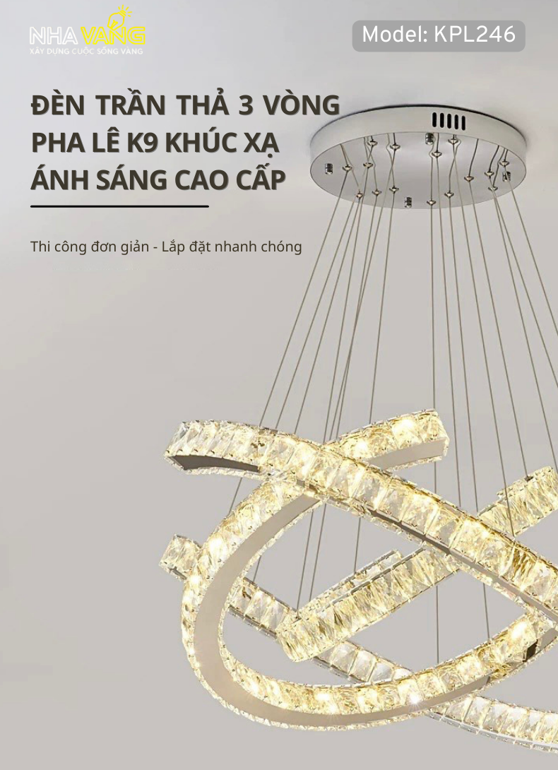 Mã đèn thả trần pha lê 3 vòng khuyết khúc xạ ánh sáng 𝐊𝐏𝐋-𝟐𝟒𝟔