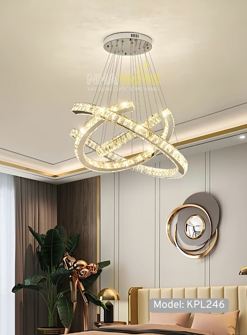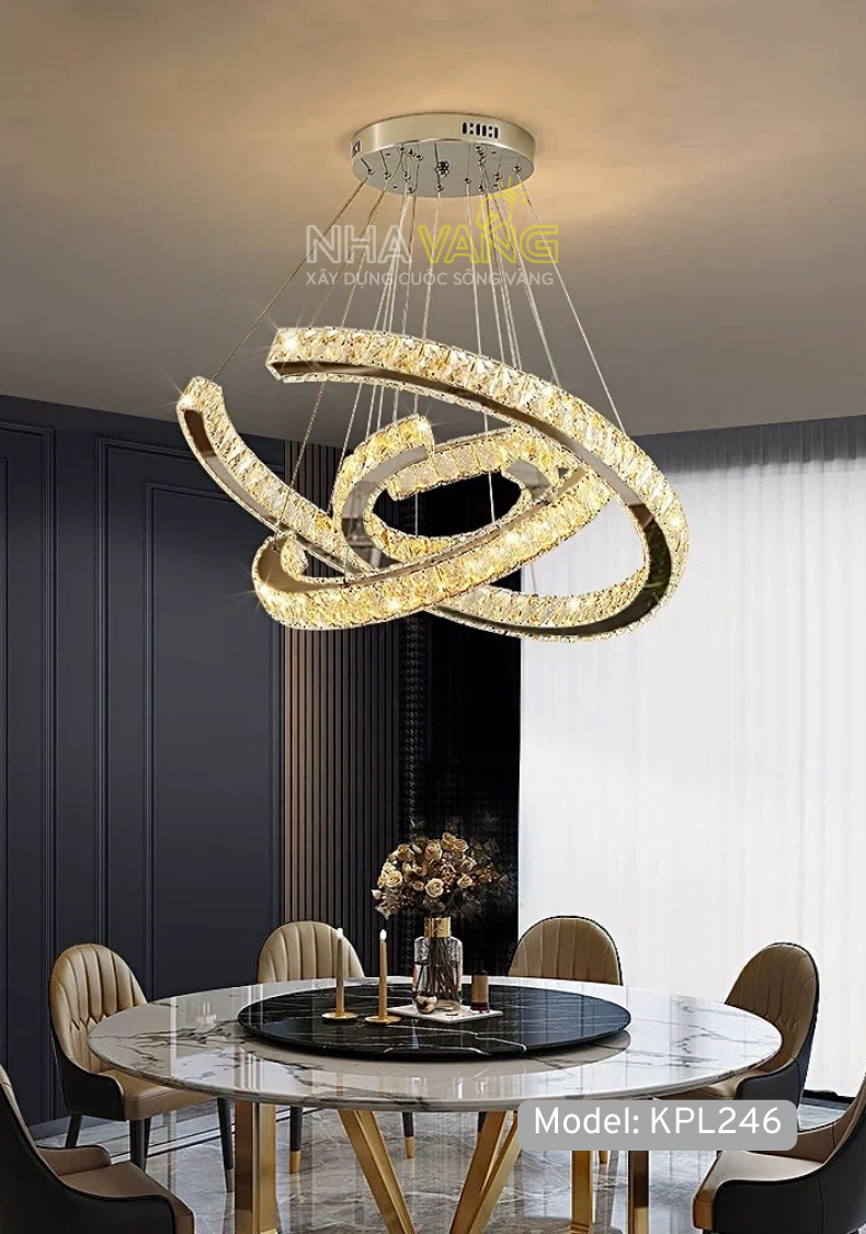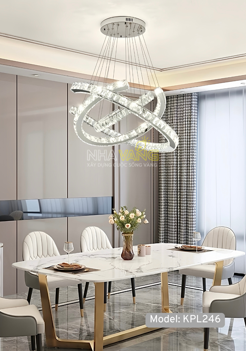 𝐊𝐏𝐋-𝟐𝟒𝟔 với thiết kế tinh tế, kiểu dáng hiện đại, dây thả cùng dáng đèn vòng tạo cảm giác mềm mại và hài hòa với không gian kiến trúc của ngôi nhà bạn, tích hợp đèn LED xung quanh tạo hiệu ứng khúc xạ êm dịu, sang trọng không gây chói lóa mắt.