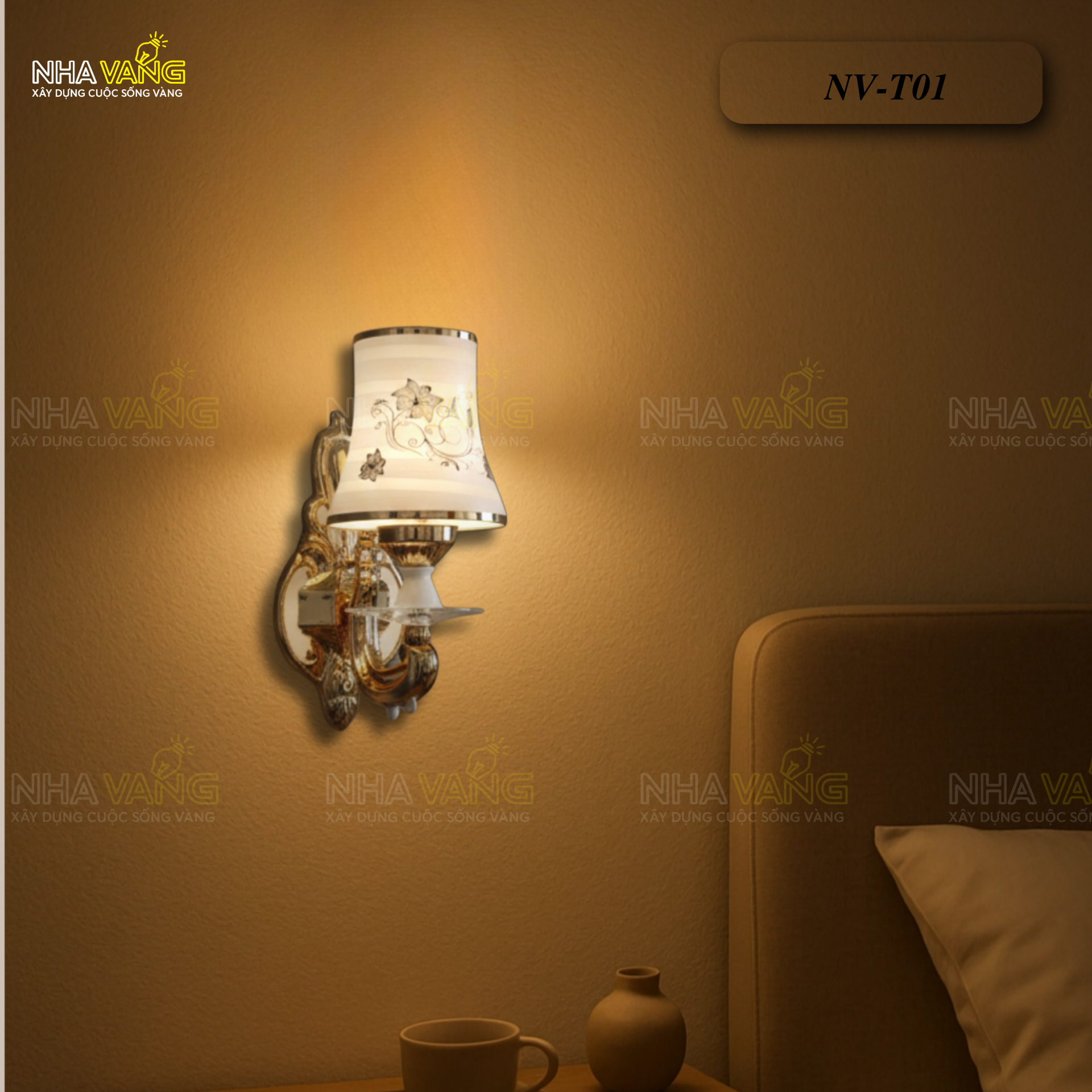 – Chất liệu: Thân đèn hợp kim, chao thủy tinh