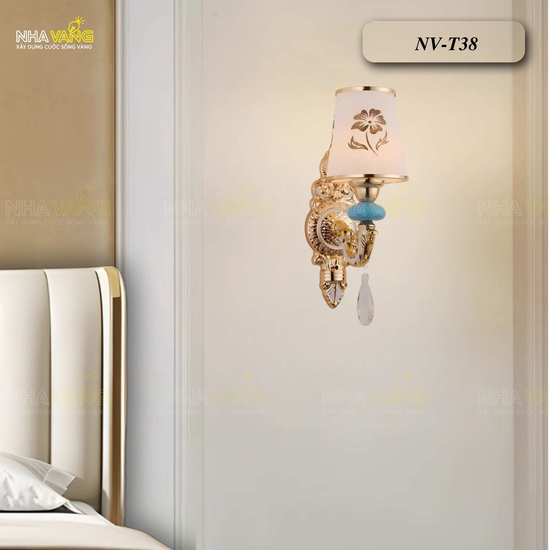 – Chất liệu: Thân đèn hợp kim, chao thủy tinh