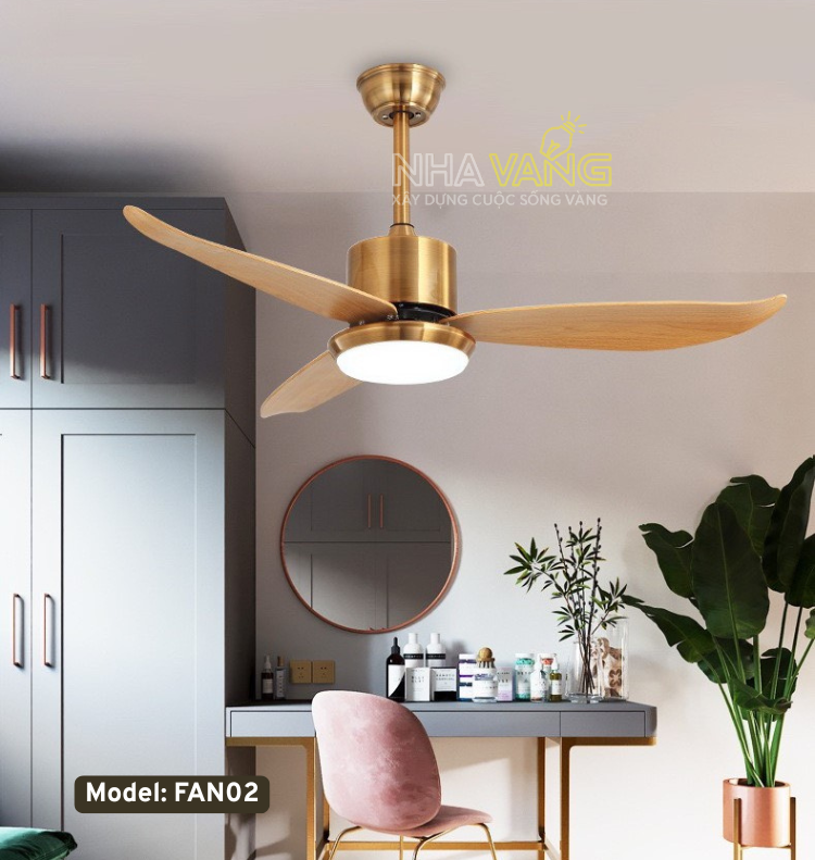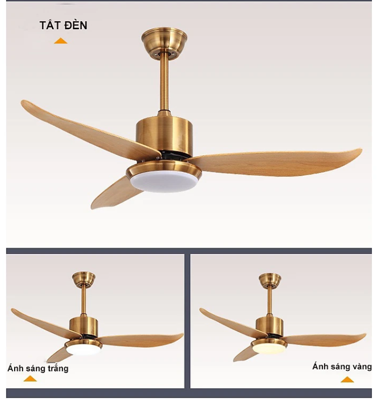 QUẠT TRẦN ĐÈN 3 CÁNH GỖ THÂN VÀNG CAO CẤP FAN-02